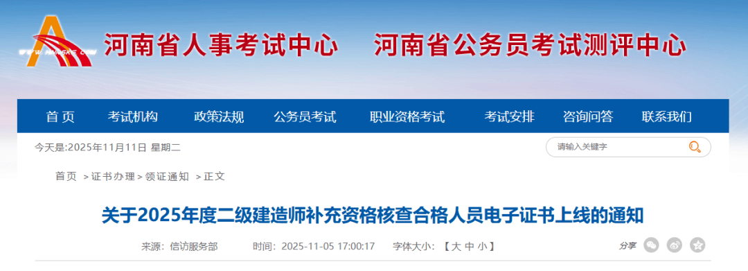 2025年度二级建造师资格考试成绩合格且通过补充资格核查人员电子证书已上线,考生可自行查询下载本人电子证书。