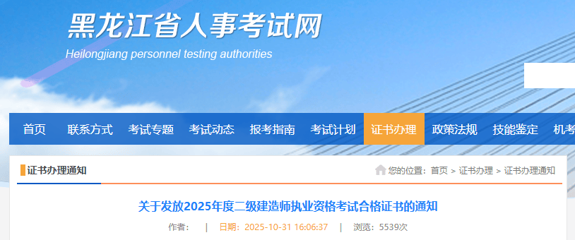 2025年度二级建造师执业资格考试合格证书于2025年11月3日开始发放,证书领取提供邮寄领取和现场领取两种方式,供考生自主选择。
