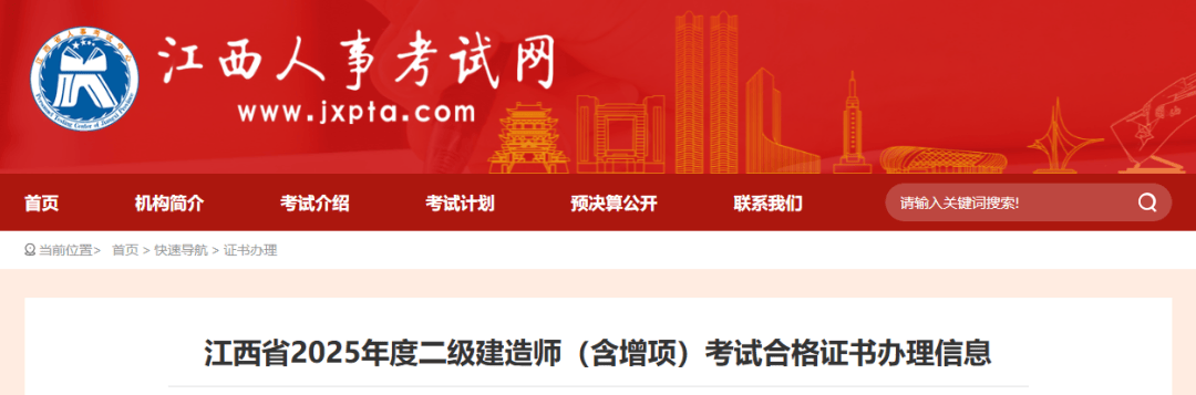 根据赣人社字〔2019〕42号文规定,为推进“互联网+政务服务”,简化办事流程,改进职称服务方式,从2019年起对通过全省统一考试取得专业技术资格的人员发放电子证书,不再发放纸质证书。请通过江西省2025年度二级建造师(含增项)考试,成绩合格的应试人员,按相关要求下载电子证书。