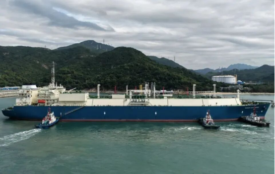 图为11月16日,装载6.1万吨进口LNG的运输船靠泊漳州LNG接收站。