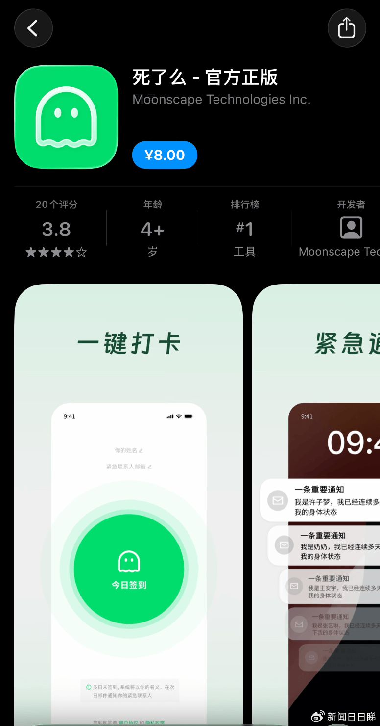 据介绍,该应用是为独居人群打造的轻量化安全工具,用户需要设置紧急联系人并签到,若连续多日没在应用内签到,系统将于次日自动发送邮件告知紧急联系人。想下载该应用软件需付费8元。