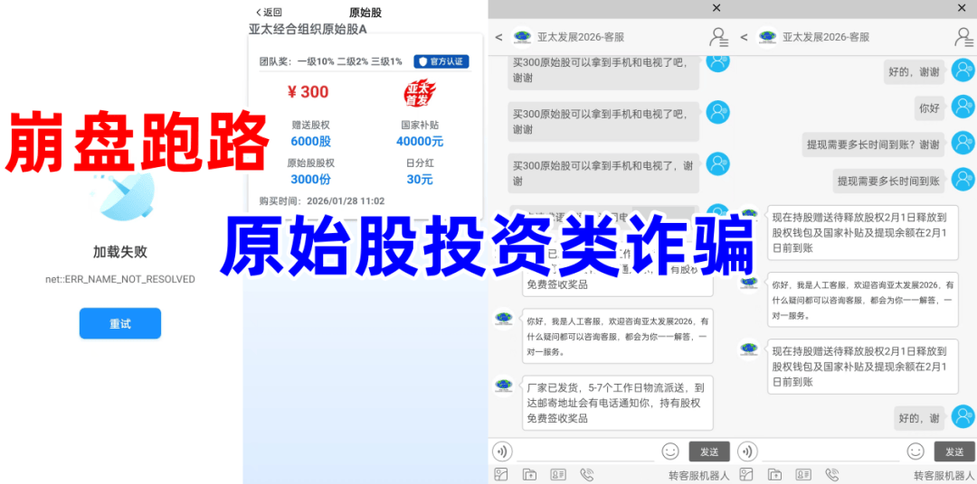 不法分子冒冒充某公司的名义,打着公司上市的旗号,制作散布涉诈APP,虚构推广“原始股”理财诈骗。据网友反馈,该项目于8日,APP已经无法打开,跑路!