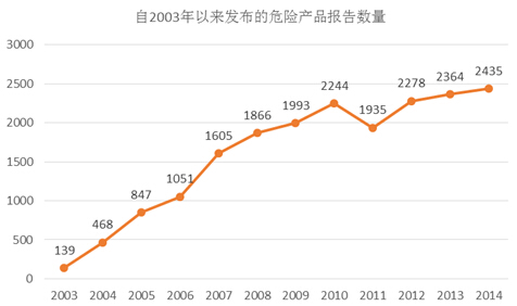 2014年共发布了2435个危险预警,这一数字相较去年增加了3%,这意味着消费者得到了更好的保护。