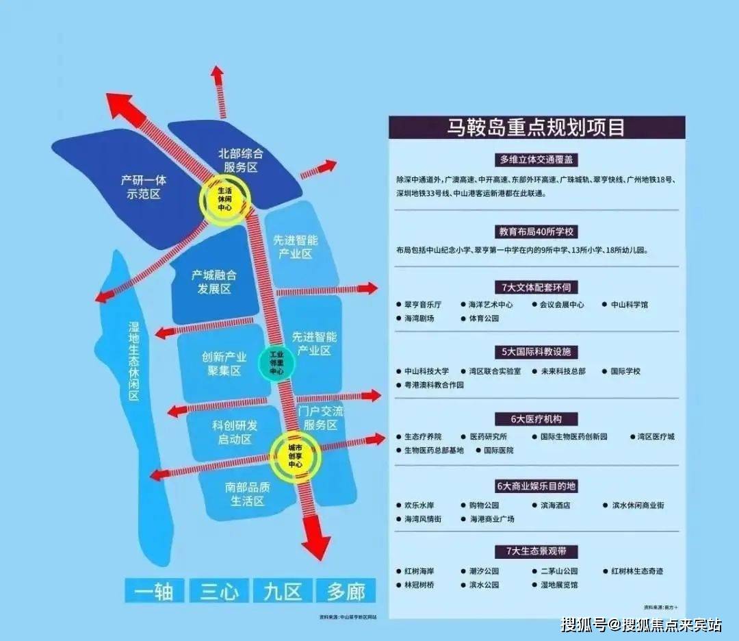 ④湾区交通中轴:同时,马鞍岛扼守大湾区海陆空交通路网中心位置,连接5机场,还有南中城际香山站落地(广州地铁18号线号线机杨-宝安国际机场、白云国际机场、香港国际机场、澳门国际机场、珠海金湾机场