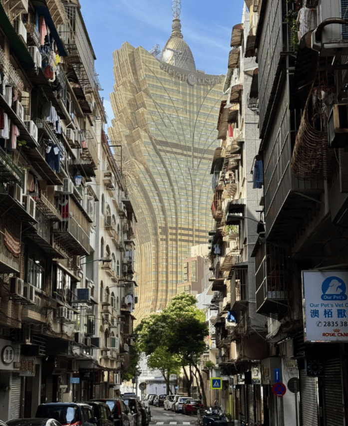 清晨乘车经港珠澳大桥前往澳门,这座世纪工程横跨碧海,行车平稳,父母连连赞叹。抵澳后依次游览大三巴牌坊、炮台山、金莲花广场与妈祖庙。阿兵边走边讲澳门400多年中西交融史,连孩子都听得入迷。特别提醒:澳门部分街道坡陡石滑,建议穿防滑鞋,阿兵也贴心为我们准备了便携折叠凳供老人随时休息。