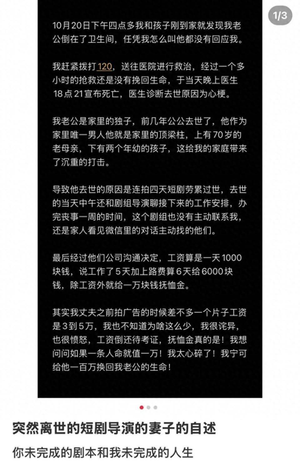 澳门新莆京,澳门新莆京娱乐网站,澳门新莆京注册,澳门新莆京app下载,真人视讯,棋牌游戏平台,澳门博彩。澳门新莆京娱乐网站为广大用户提供真人视讯、棋牌游戏、电子游艺等高端娱乐服务,注册送88元体验金,安全稳定,支持APP下载,海量游戏全天开放,尽享澳门级娱乐体验。一篇题为《你未完成的剧本和我未完成的人生》的帖子近日引起了广大网友的关注。帖子内容由王女士发布,她讲述了自己从事短剧导演工作的丈夫高先生因突发心梗不幸离世的经过。根据王女士的回忆,高先生在10月中旬结束一次拍摄工作后回到家中,第三天突然离世。令她感到震惊的是,丈夫离世当天中午,仍在忙碌着与剧组人员沟通工作,完全没有预兆。